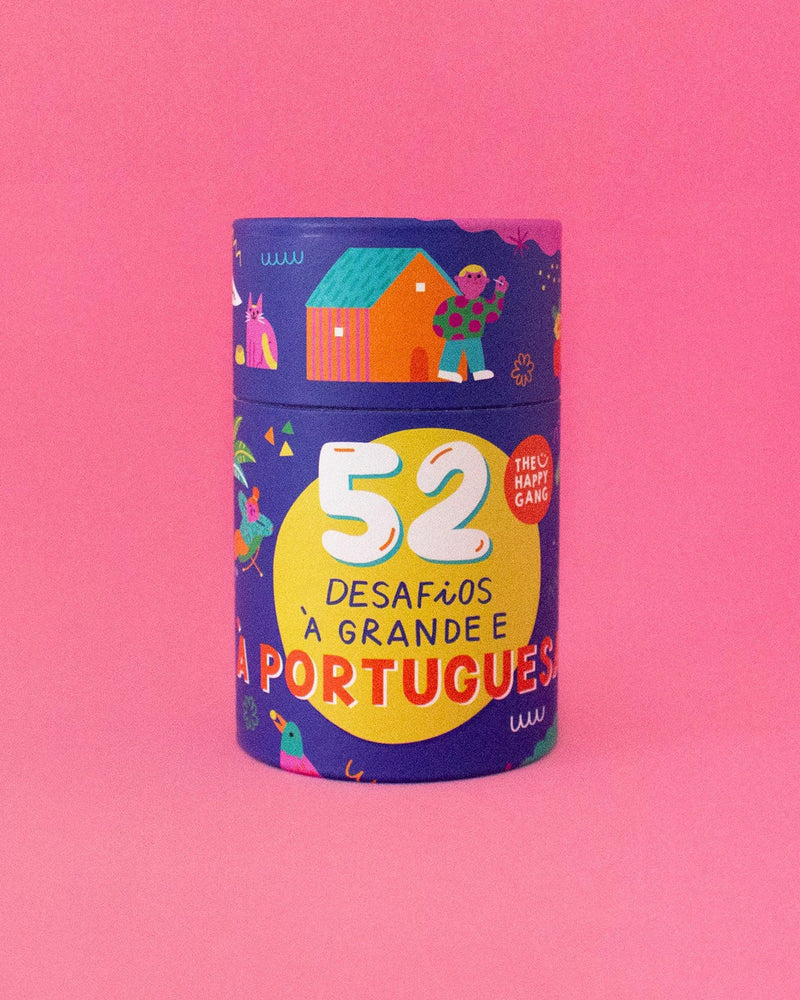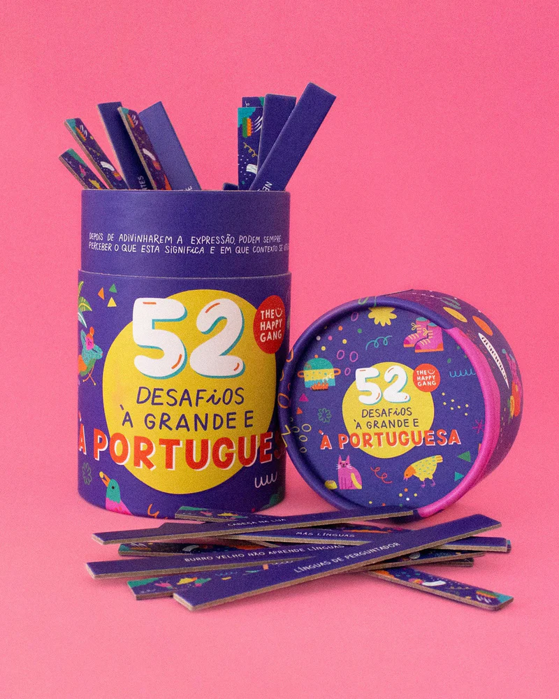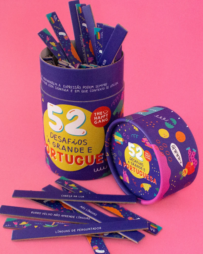 O Jogo "52 Desafios à Grande e à Portuguesa" do The Happy Gang explora expressões portuguesas de forma divertida. Com 52 cartões ilustrados pela Ana Seixas, este jogo incentiva a criatividade através de desenhos ou mímica. Perfeito para famílias e amigos, proporciona risadas e memórias incríveis.