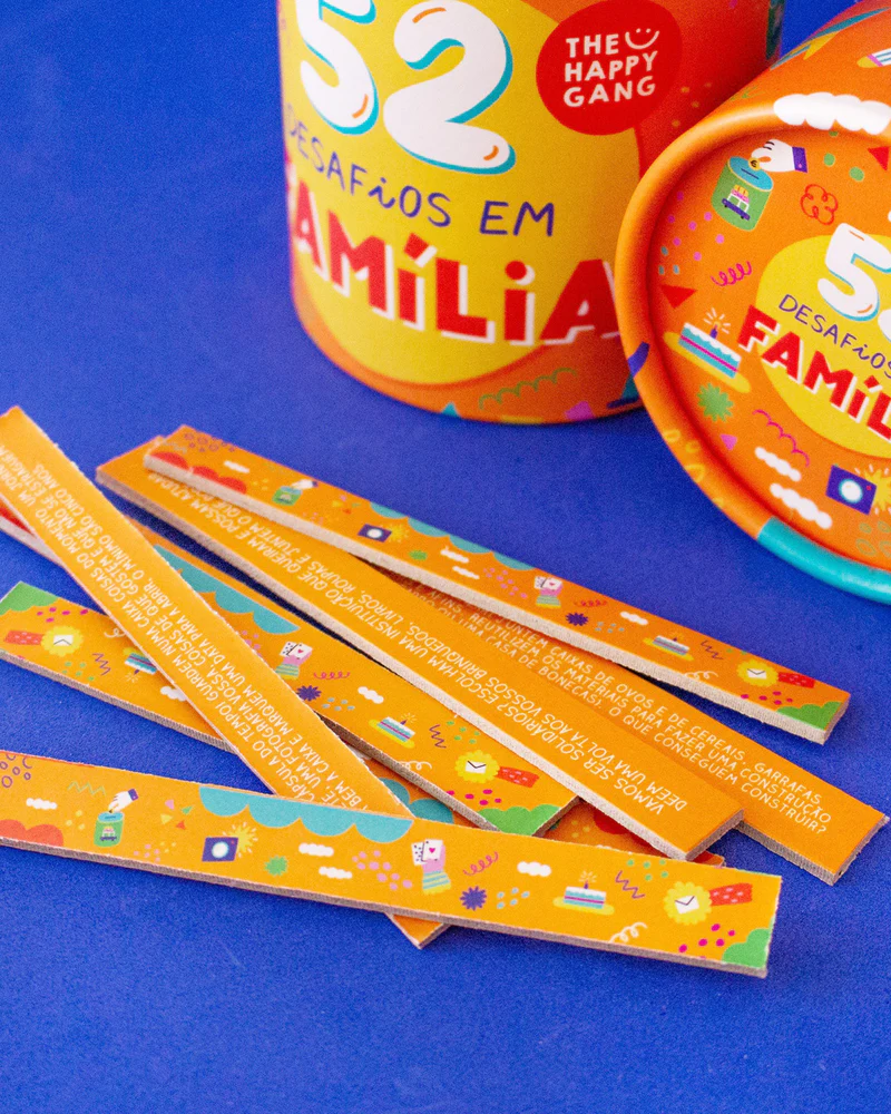 O Jogo "52 Desafios Em Família", do The Happy Gang, é o jogo perfeito para criar laços e memórias alegres em família. Cada um dos 52 cartões, ilustrados por Ana Seixas, propõe um desafio divertido que promove risadas e atividades em conjunto. Simples de jogar: tire um cartão e siga a sugestão.