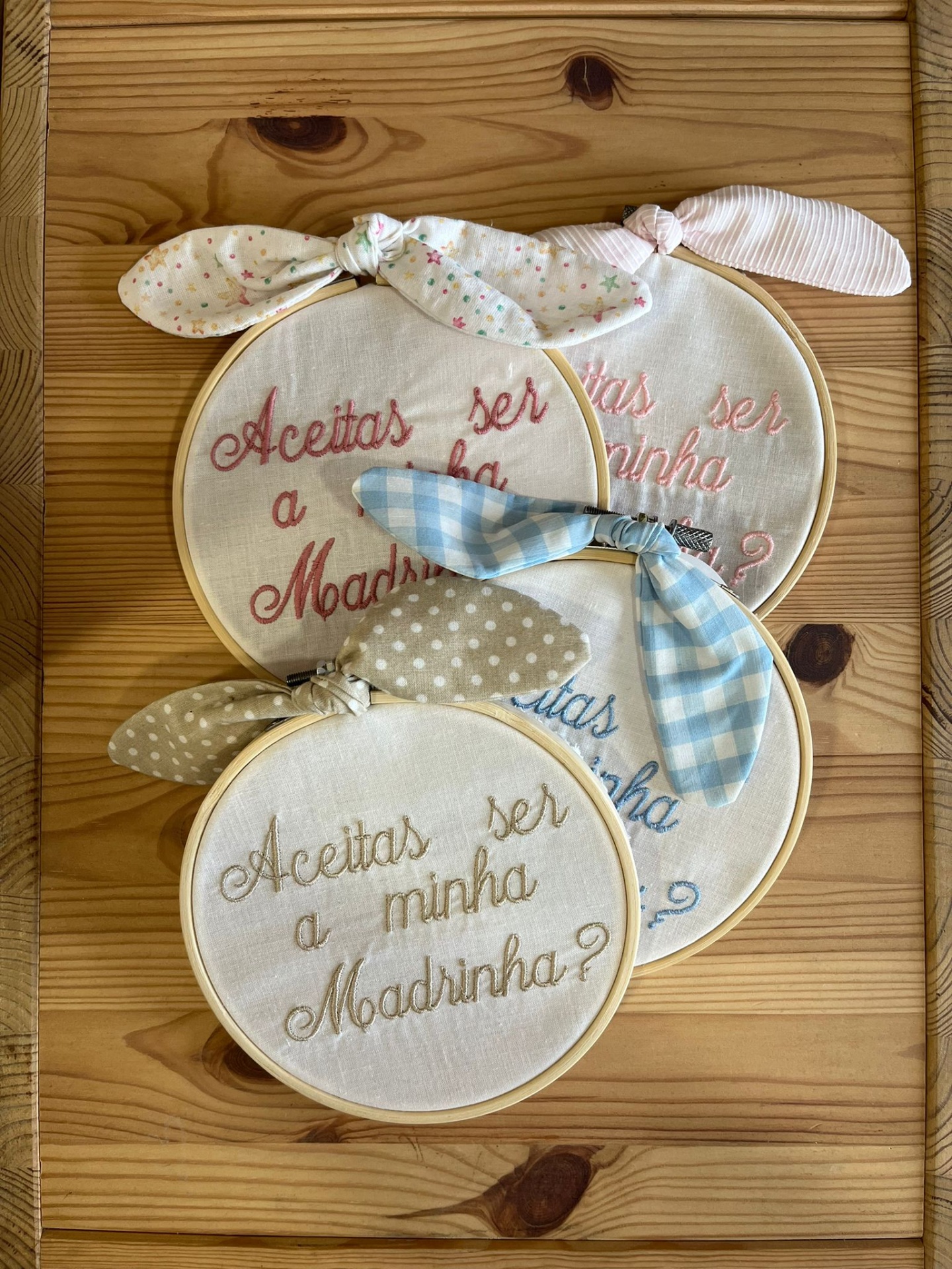 Home Complementos Bastidor Padrinhos Bastidor Padrinhos Cor Azul Rosa Cinza Bege Convite para Madrinha Padrinho Padrinhos 12,50 € Desconto de %. IVA incluído. Comprar Contactar Adicionar à wishlist Bastidor decorativo. Medida: 12 cm de diâmetro COLOCAR A MENSAGEM A BORDAR, SE DIFERENTE DA FOTO, NO FINAL DA ENCOMENDA NO CAMPO "OBERSERVAÇÕES" Um exclusivo Chikilin's Marca Chikilin's Partilhar