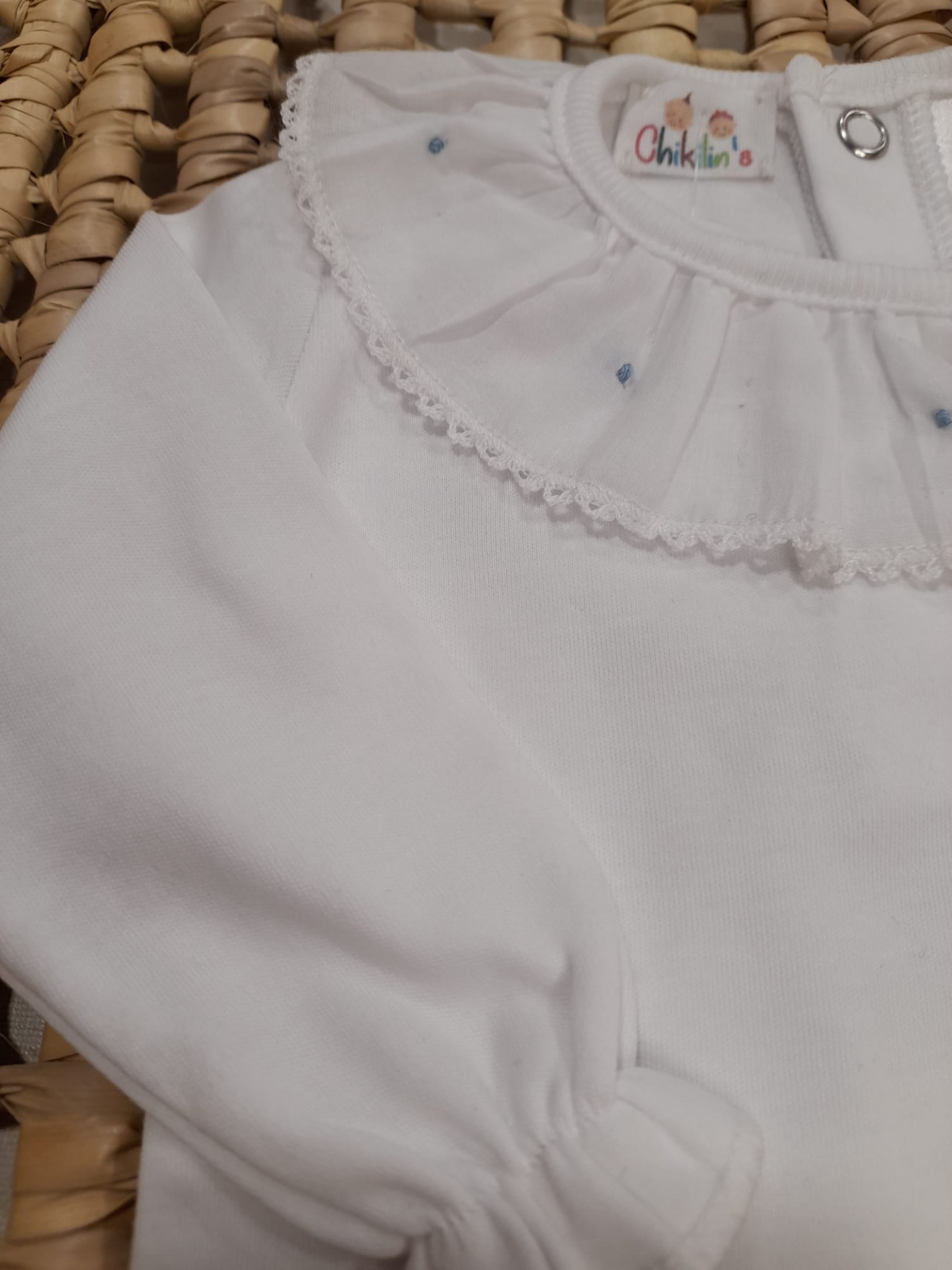 Home Bodys Body com gola redonda bordada Body com gola redonda bordada Cor Azul Bege Rosa Verde Cinza Tamanho 1 Mês 3 Meses 6 Meses 9 Meses 12 Meses 18 Meses 24 Meses 14,00 € Desconto de %. IVA incluído. Comprar Contactar Adicionar à wishlist Body de manga comprida com gola bordada à mão. Composição: 100% Algodão com carda Marca Chikilin's Tags bodybody com gola Características Partilhar