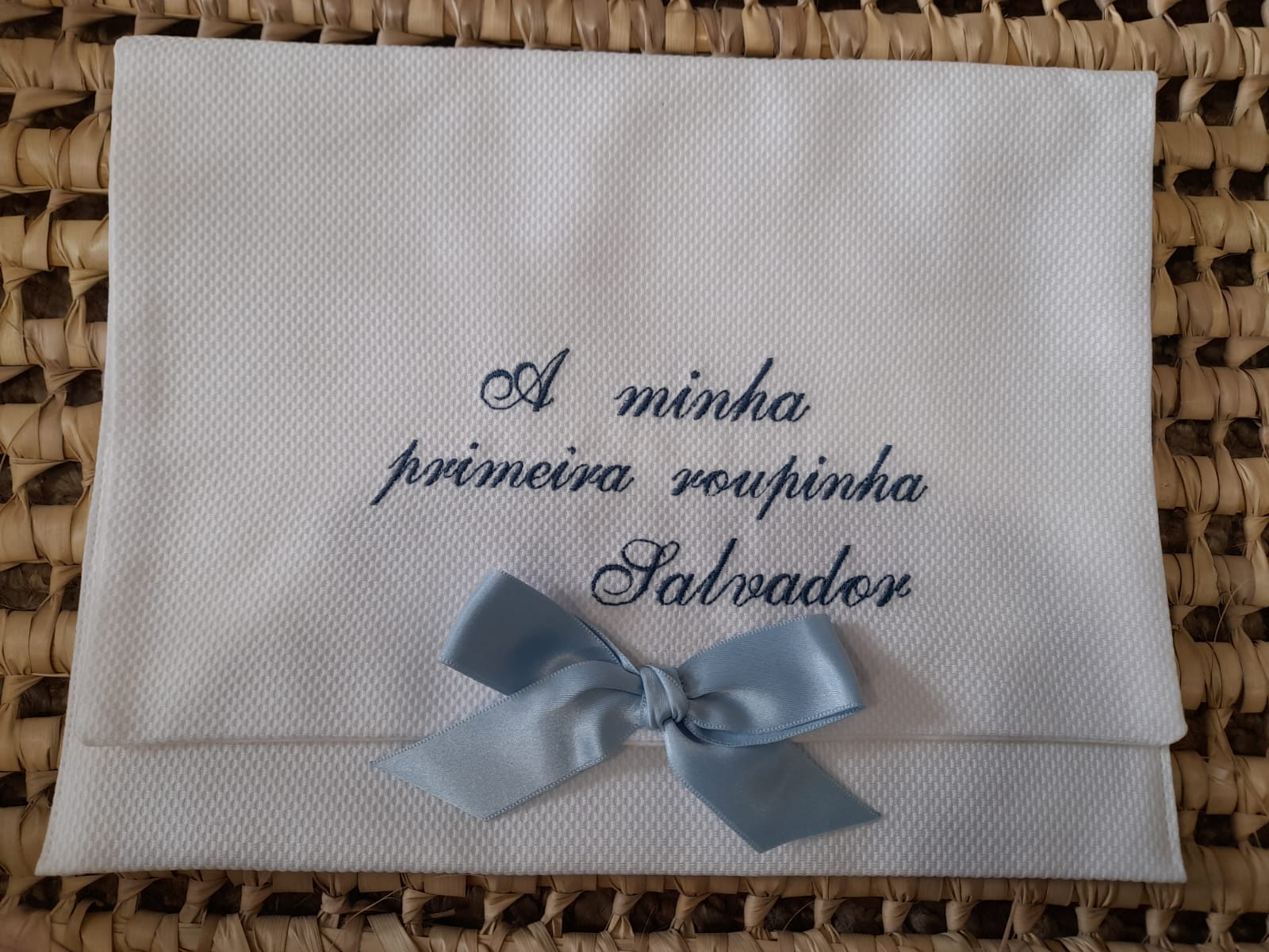 Home Complementos Envelope para a 1ª Roupinha Envelope para a 1ª Roupinha Cor Azul Rosa Verde Cinza Bege 19,95 € Desconto de %. IVA incluído. Comprar Contactar Adicionar à wishlist Envelope personalizado de Piquet ideal para colocar a primeira roupinha do seu bebé. Composição: 100% Algodão Marca Chikilin's Tags Saco para a 1ª Roupinha d Partilhar