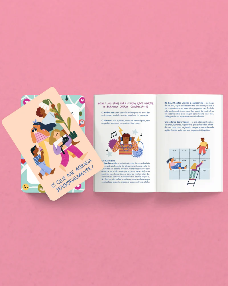 As Flashcards "Quero Conhecer-me!" do The Happy Gang é um conjunto de 30 cartas ilustradas e um livro que propõem perguntas e atividades para autoconhecimento. Ideal para crianças a partir dos 11 anos, estas flashcards são perfeitas para exploração individual ou em família, promovendo o desenvolvimento de habilidades interpessoais e pessoais.