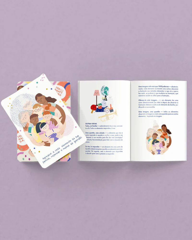 As Flashcards "Vamos Conversar?" do The Happy Gang é um conjunto de 30 cartas com questões e temas variados, acompanhado de um livro com sugestões de uso. Ideal para facilitar diálogos em família, este conjunto promove a partilha e o desenvolvimento de habilidades interpessoais em crianças a partir dos 3 anos.